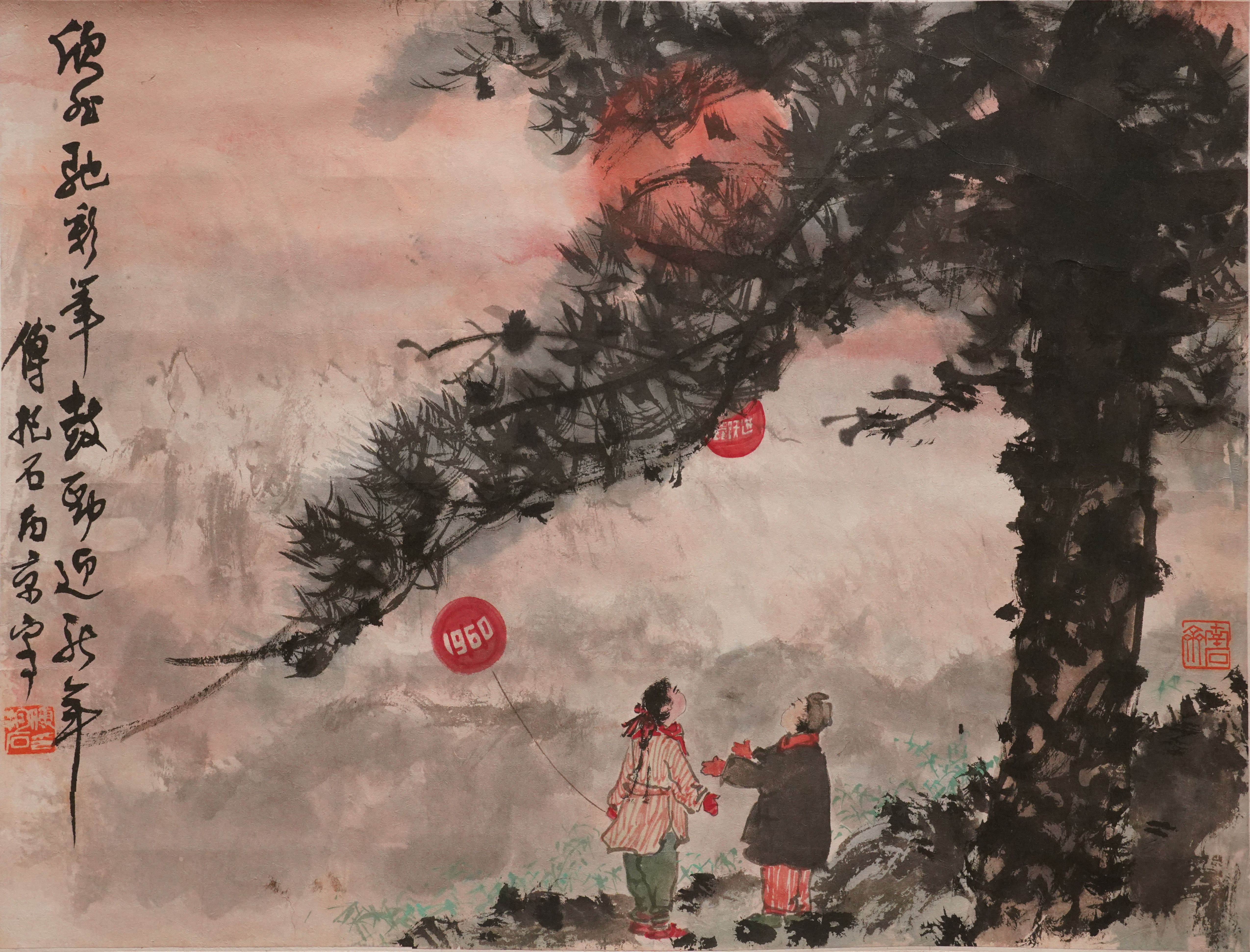 26 毛泽东《如梦令·元旦》词意 约60年代 册页纸本 设色27 毛泽东《满江红·和郭沫若同志》词意 1964年 横幅纸本 设色28 《雨花台第二泉》 1956年 立轴纸本 设色29 毛泽东《沁园春·雪》词意 单片纸本 设色30 《柳阴渔舟》 约50年代 立轴纸本 设色31 《韶山招待所》 1959年 纸本 设色32 《飞瀑图》 1955年 册页纸本 设色33 《鼓劲迎新年》 1960年 立轴纸本 设色34 《绿满钢都》 1961年 单片纸本 设色35 《连舟运粮》 约60年代 立轴纸本 设色36 《江苏民歌》 1958年 册页纸本 设色37 《松花江上》 1961年 立轴纸本 设色38 《山城雄姿》 1960年 单片纸本 设色39 《天池飞瀑》 1961年 立轴纸本 设色40 《老虎滩渔港》 1961年 立轴纸本 设色41 《和平的图们江》 1961年 立轴纸本 设色42 《天池林海》 1961年 手卷纸本 设色43 《楼起群山间》 约50年代 册页纸本 设色44 《云霞出海曙》 1961年 立轴纸本 设色45 《将到延边》 1961年 立轴纸本 设色46 《画史新翻踏歌图》 1962年 立轴纸本 设色47 《呵!长白山》 1961年 横轴纸本 设色48 《漫游太华》 1960年 册页纸本 设色49 《古城里》 1961年 横幅纸本 设色50 《假日千山》 1961年 单片纸本 设色51 《北湖头运木场》 1961年 册页纸本 设色