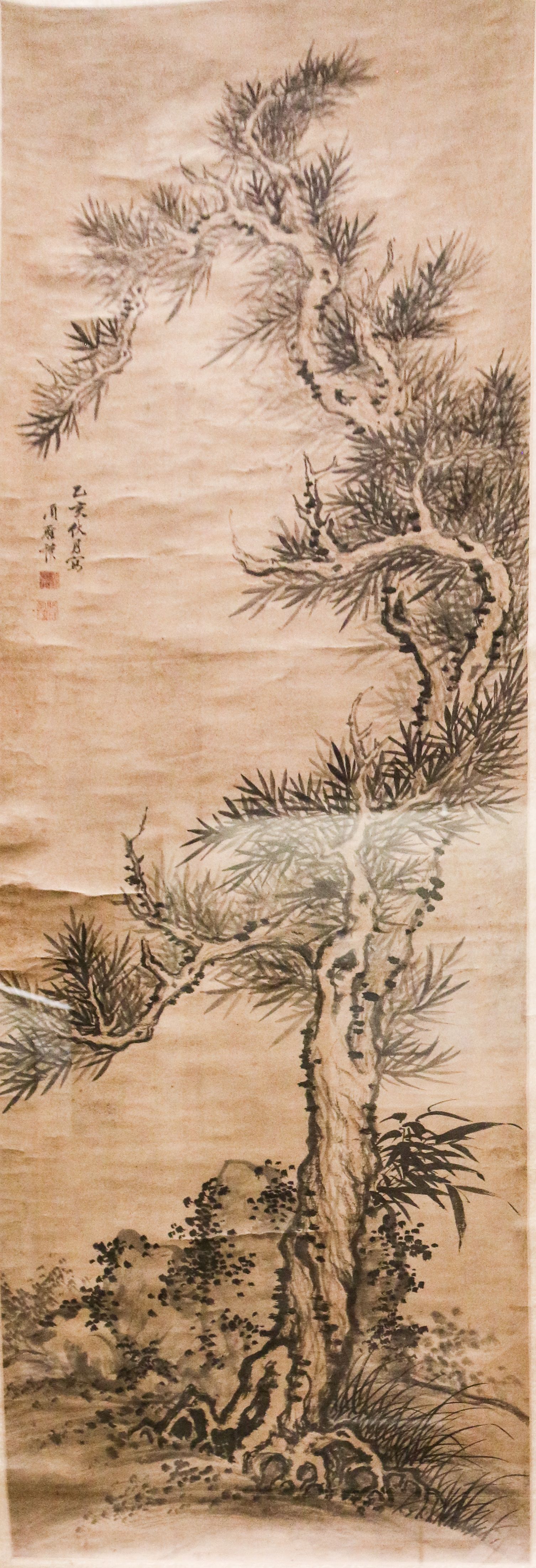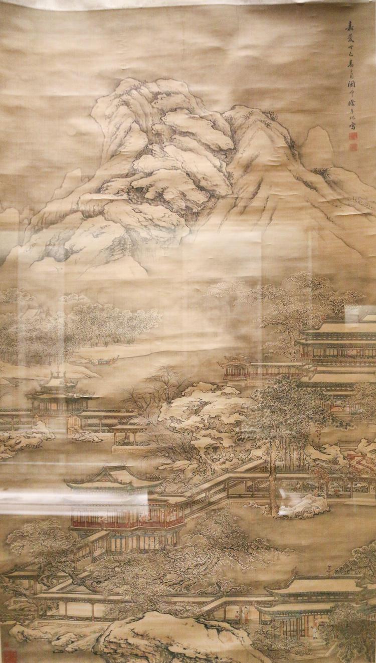 28. 《松荫高士》 陈洪级 明 立轴/绢本设色29. 《松竹石》 项圣谟 明 立轴/纸本水墨30. 《月下吹箫图》 费丹旭 清 立轴/纸本设色31. 《芦中泊舟图》 龚贤 清 画片/纸本水墨32. 《醉后山水》 方士庶 清 立轴/纸本水墨33. 《客座图》 奚冈 清 立轴/纸本水墨34. 《蟒导河官衙即事》 高翔 清 立轴/纸本水墨35. 《仿江贯道雪溪图》 王翚 清 立轴/纸本设色36. 《春雪图》 阴东林 1797年 立轴/绢本设色37. 《山水》 廖经 清 立轴/纸本水墨38. 《秋山图》 袁江 清 立轴/纸本水墨39. 《袖里奇峰》 关思 张宏 等 明 手卷/纸本水墨40. 《锦鸡图》 佚名 明 立轴/绢本设色41. 《幽禽图》 喦 清 立轴/纸本设色42. 《竹石图》 郑燮 清 立轴/纸本水墨43. 《孔雀芭蕉》 任伯年 清 立轴/纸本设色44. 《仿北苑山水》 丘园 明 立轴/绢本水墨45. 《仿洪谷子山水》 条邵弥 明 立轴/绢本设色46. 《右军书扇》 佚名 明 轴/绢本设色47. 《法王维雪景图》 蓝瑛 明 立轴/绢本设色48. 《仿巨然夏寒图》 王翚 清 翠立轴/纸本水墨49. 《顾绣山水人物四条屏刺绣》 清 立轴(四条屏)/刺绣50. 《临唐寅松轩读易》 王荦 清 立轴/纸本水墨51. 《仿石田山水》 梅清 清 立轴/纸本水墨52. 《仿黄鹤山樵笔》 徐溶 清 扇面/纸本设色53. 《人物图》 任熊 清 立轴/纸本设色54. 《鸡石花卉》 施闰章 清 立轴/绢本水墨