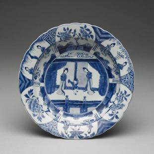 十七世纪 青花仕女花瓣口洗 简介
