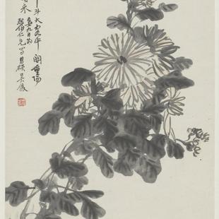 吴昌硕最擅长写意花卉,受徐渭和八大山人影响最大,由于他书法、篆刻功底深厚,他把书法、篆刻的行笔、运刀及章法、体势融入绘画,形成了富有金石味的独特画风。吴昌硕作画用“草篆书”以书法入画;线条功力异常深厚。虽然从状物绘形的角度看其线条的质感似乎不够丰富、切实,但恰恰是舍弃了形的羁绊,吴昌硕的绘画才步入了“意”的厅堂,从而形成了影响近现代中国画坛的直抒胸襟,酣畅淋漓的“大写意”表现形式。