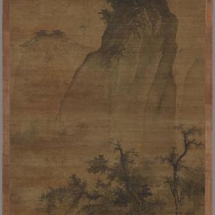 此幅无印款,张荫椿题签作:宋许道宁携琴访友图。可能是应朋友所托,高推至北宋名家。大英博物馆官方定作者为蒋嵩,更为接近真实,然传世蒋嵩山水真迹,山石皴笔更为阔大,水墨更加淋漓,故此画或是其传派画家所作。