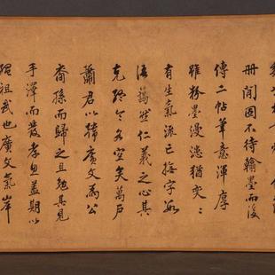韩琦为北宋名相,历仕仁宗、英宗、神宗三朝。其楷书受颜真卿影响而自成一家。此《札卷》为二通,前札系韩琦请欧阳修为自己新建的昼锦堂作文,即《乞欧阳修记书锦堂札》。欧阳公此文为后世传颂的《昼锦堂记》。此札为后札,即《记成谢欧阳修札》。此信札经辗转收藏,有蔡景行、泰不华、高士奇等历代名人题跋。据载朱熹也曾在此卷上有跋,惜已不存。此信札及蔡景行跋语选入《三希堂法帖》,名《谢欧阳公帖》,又名《信宿帖》。