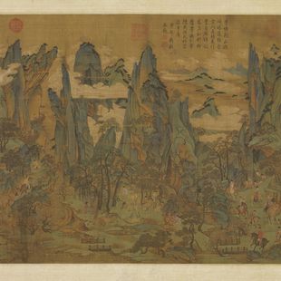 清宫收藏目录中原标此作为「宋人关山行旅图」,但学者依据苏轼《东坡题跋》等宋代资料,而改为今名,并推测是唐玄宗因安史之乱避幸四川之故实为画作主题。 画中山体的青绿设色与石质峭峰造型,确有唐代之源头,但其华丽而细致之敷染及精谨的线条运用,却显示出十一、二世纪仿本的特质。它的山体结构尤其接近出于十世纪末的《秘藏诠》版画中的山水。据文献所记,宋初四川亦多从事此风格,而被误认为唐代李思训作品者,今本是否属此,值得考虑。无论如何,此作代表著北宋对古典传统的继承,十分具有重要性。