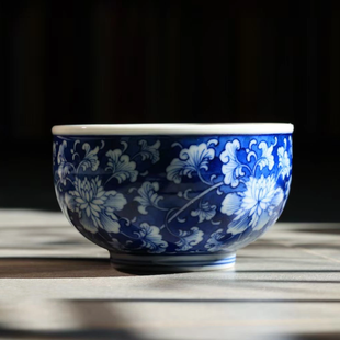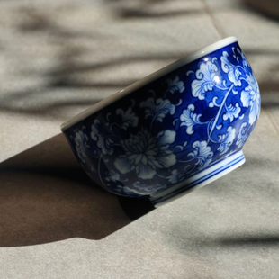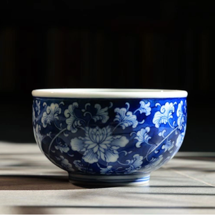 蓝底牡丹筋口圆融杯