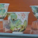 玩茗堂,主打粉彩花鸟系列、仿王步风格。窑主彭磊鑫,上手真迹众多,既能承袭王步器物的风韵,也能在此基础上创新。彭磊鑫祖孙四代执着于文人国画,将张大千画花鸟的技法运用到了瓷绘上,令人耳目一新。