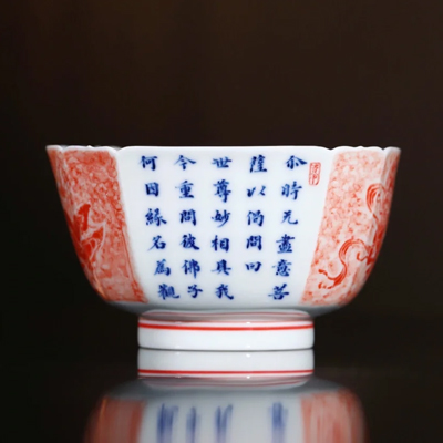 铭经草堂 陈晋制 青花矾红耕织图直筒杯景德镇手绘柴窑茶杯