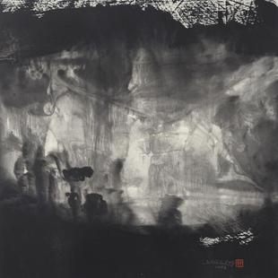 李庚的绘画,抽象与写实兼有,有时他的用墨与笔触重叠,带有强烈的构成空间形式。在这方面,他的绘画态度与塞尚相似。塞尚将自然用几何形的要素进行还原,再从那里着手再构成,给绘画带来骨骼与立体性。这些在李庚艺术上是能找到相通点的。