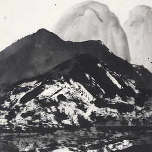 李庚的绘画,抽象与写实兼有,有时他的用墨与笔触重叠,带有强烈的构成空间形式。在这方面,他的绘画态度与塞尚相似。塞尚将自然用几何形的要素进行还原,再从那里着手再构成,给绘画带来骨骼与立体性。这些在李庚艺术上是能找到相通点的。