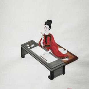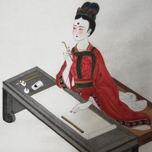 手绘国画《上官婉儿制诰图》