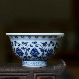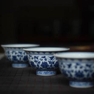 青花永乐缠枝莲小压手杯75ml 鸳鸯心狮心