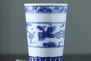 青花永乐缠枝莲小压手杯75ml 鸳鸯心狮心 简介