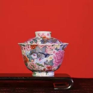 粉彩万花青花描金蝴蝶二才盖碗 简介