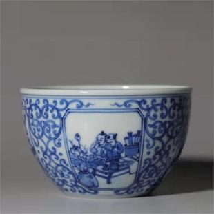 青花缠枝莲开窗婴戏图卧足缸杯 简介