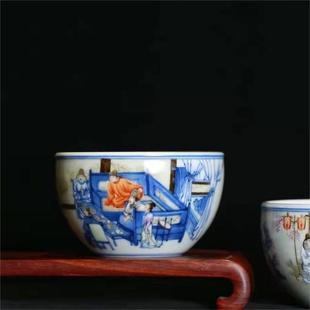 青花斗彩桃李夜宴对杯