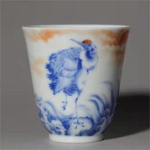 青花矾红海水鹤纹闻香杯