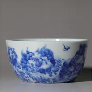 青花九狮卧足缸杯
