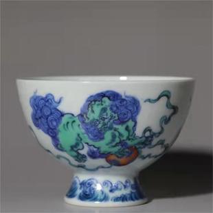 皇窑仿清乾隆瓷胎画珐琅锦上添花绿地酒盅