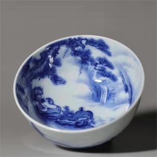 青花人物山水品茶杯松山观瀑图缸杯 简介