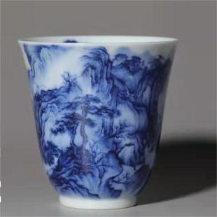 青花山水早春图闻香杯品茶杯