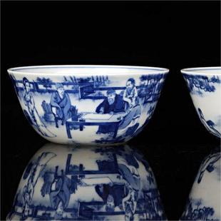 青花西园雅集对杯品茗杯