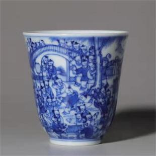 青花婴戏图百子图小闻香杯