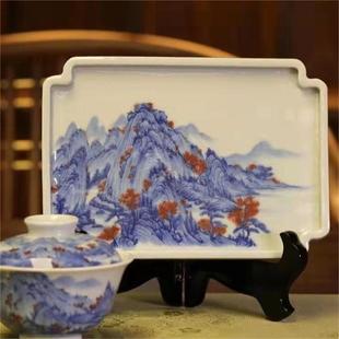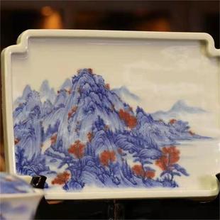 青花釉里红富春山居图壶承