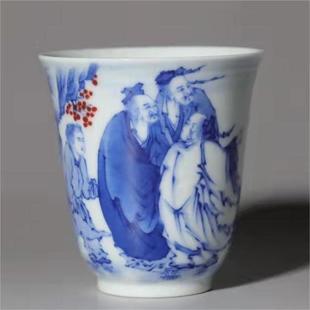 青花釉里红人物放鹤图闻香杯