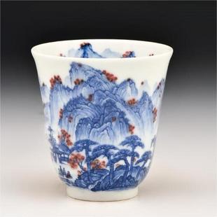 青花釉里红山水杯 简介