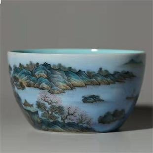 青绿山水卧足缸杯