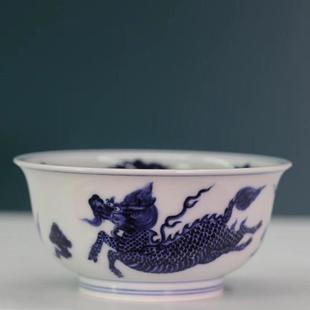 青花麒麟撇口品茶杯