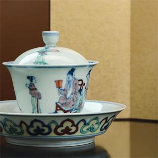 窑主江歆,毕业于景德镇陶瓷大学。窑口专注于成化斗彩和青花,还有空白期的青花。宛玉使用原矿料彩,柴窑烧制。其中仿成化青花延续成化的淡雅之风,区别于清代分⽔技法,以“⼩拓水”将层次分明。仿成化斗彩釉质温润如凝脂,料彩纯正,⾊润⽽而不躁、柔和悦⽬。仿永宣青花系列。青花呈色艳丽厚重,纹饰典雅流畅,有明早期豪放特点,器型稳重,又兼取文采。