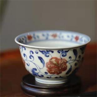 宛玉無名青花釉里红缠枝花卉杯 简介