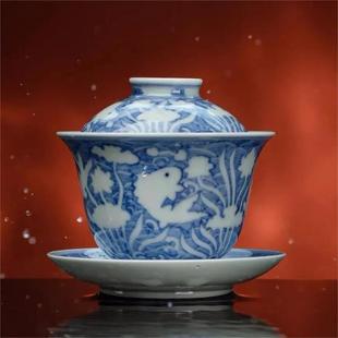 宛玉無名鱼藻纹盖碗