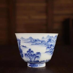 小雅青花山水碗杯