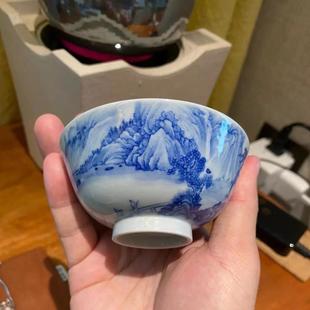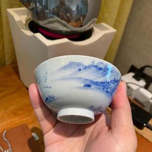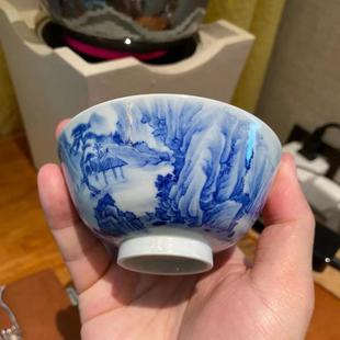 二亭青花釉里红云峰高秋图压手杯