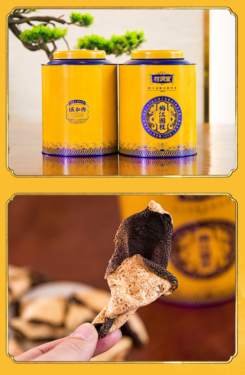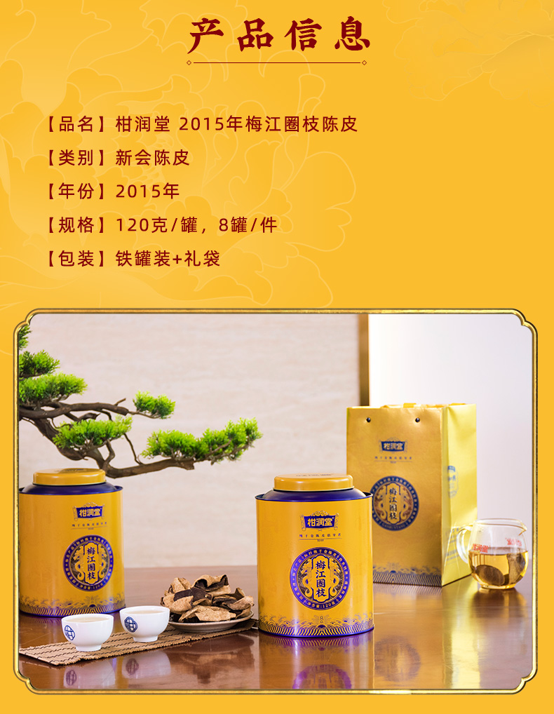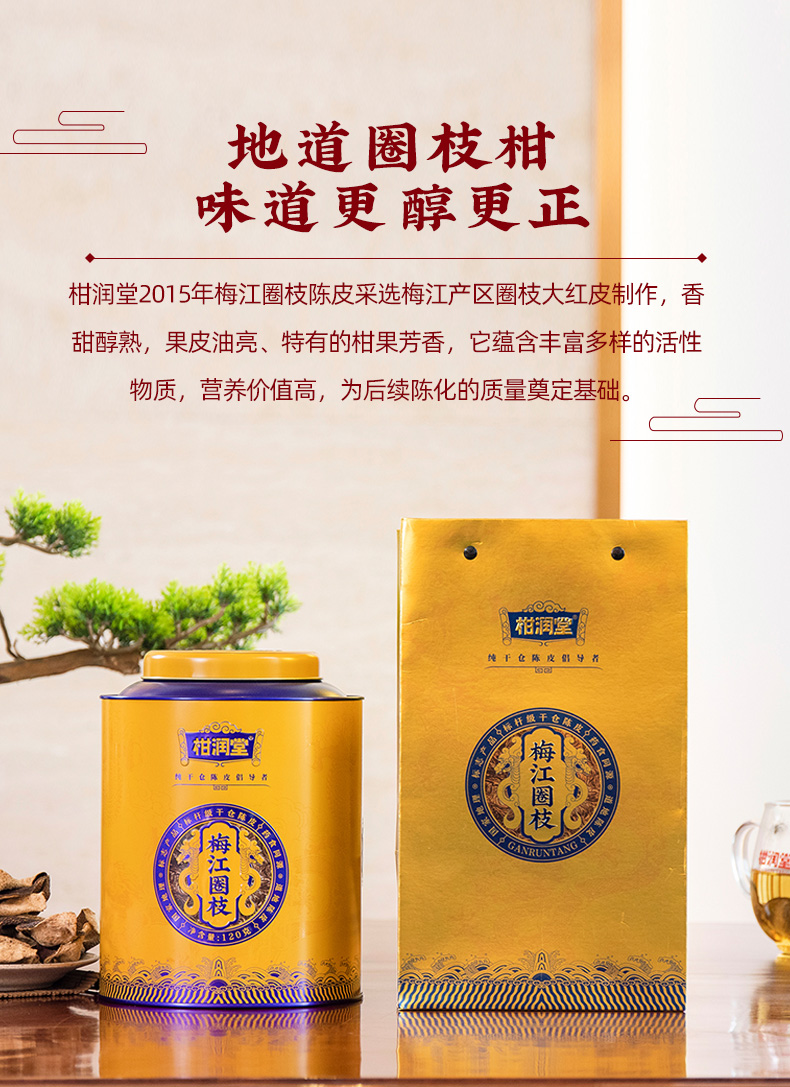 柑润堂2015年梅江圈枝陈皮新会陈皮送礼广东特产铁罐礼袋装120g 简介