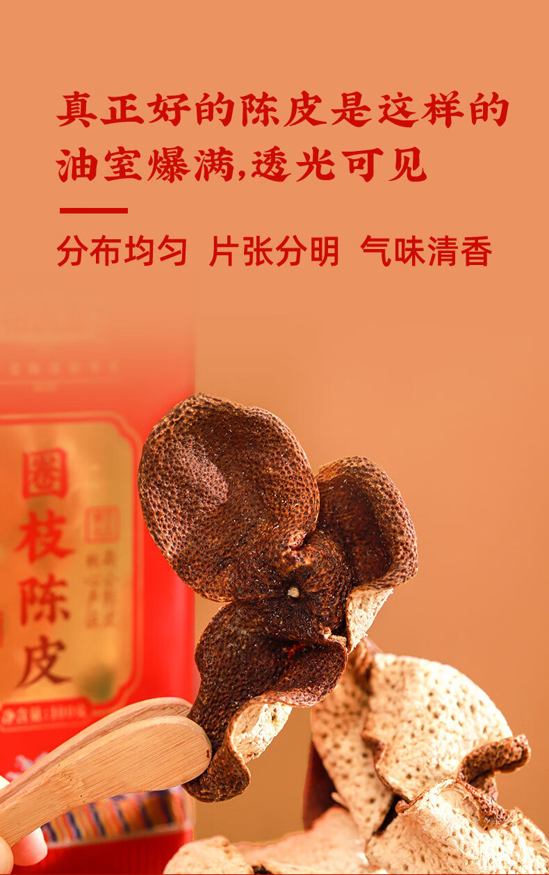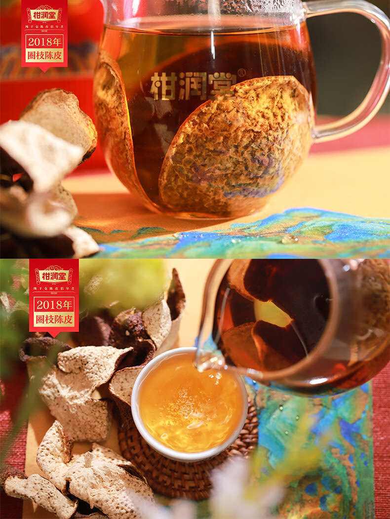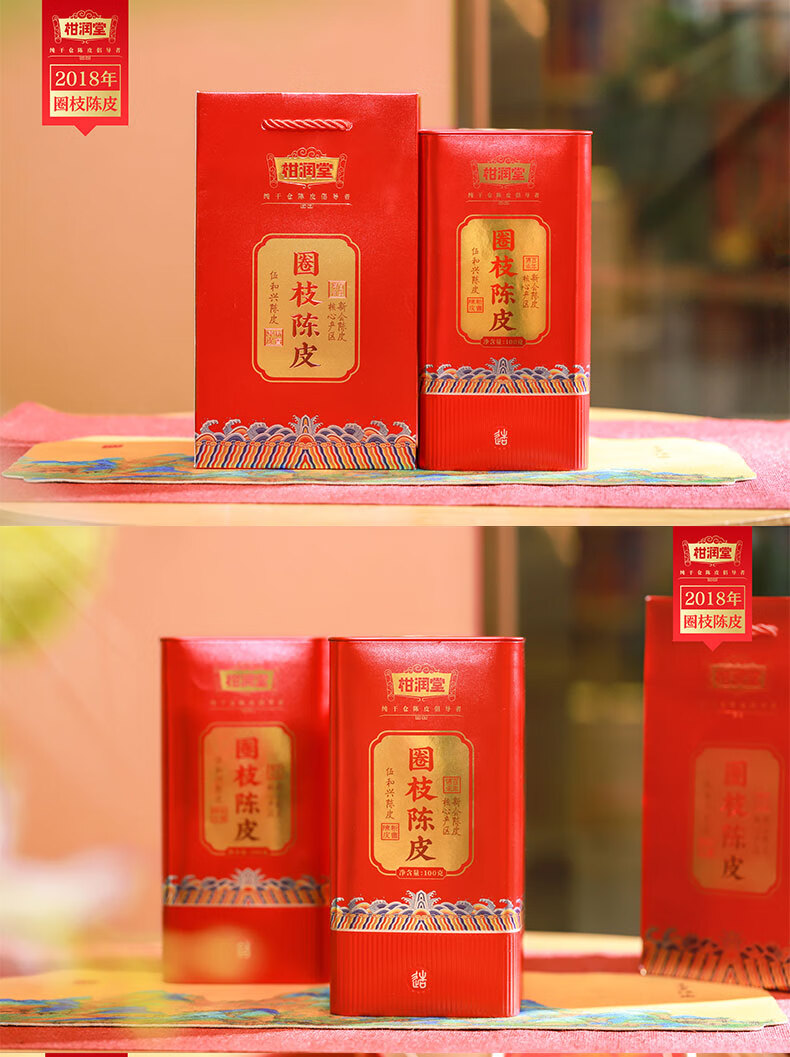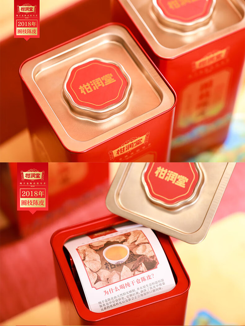 柑润堂 2018年新会圈枝陈皮纯干仓陈放5年陈皮新会特产送礼罐装100克 简介