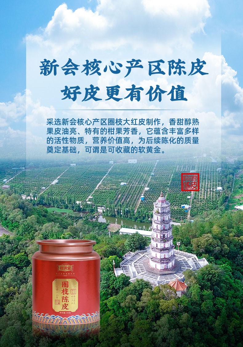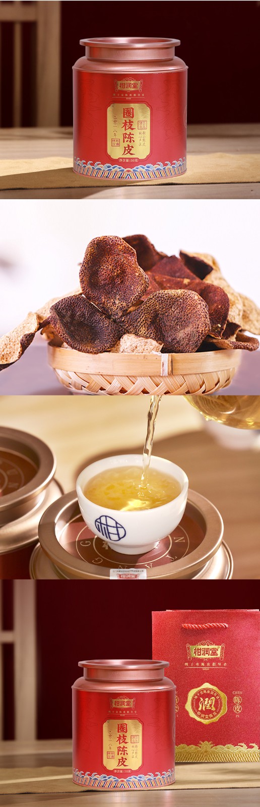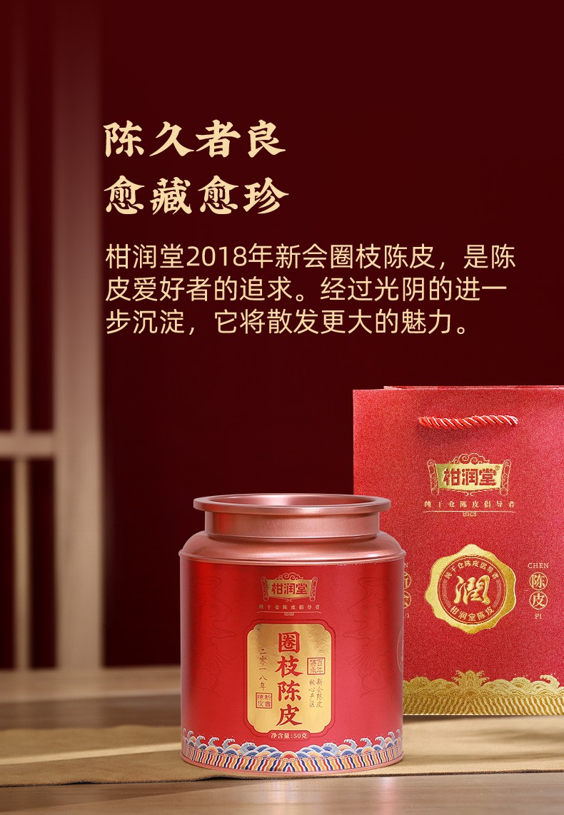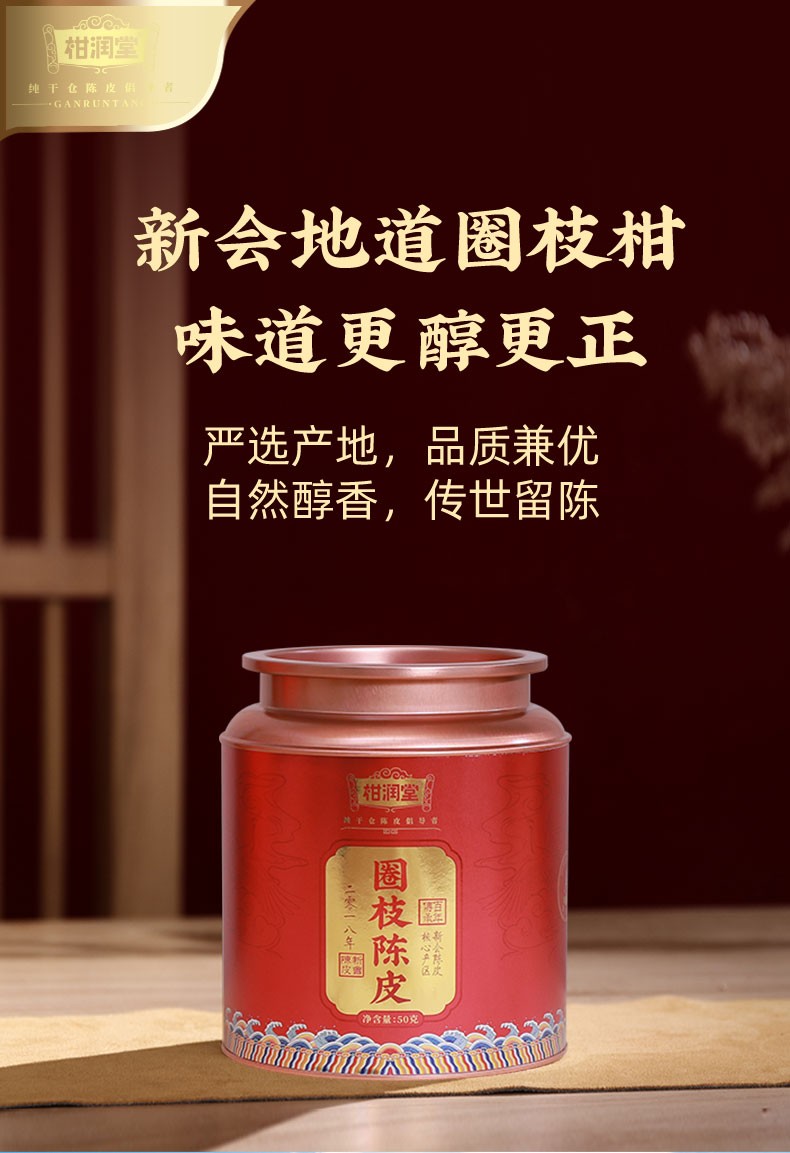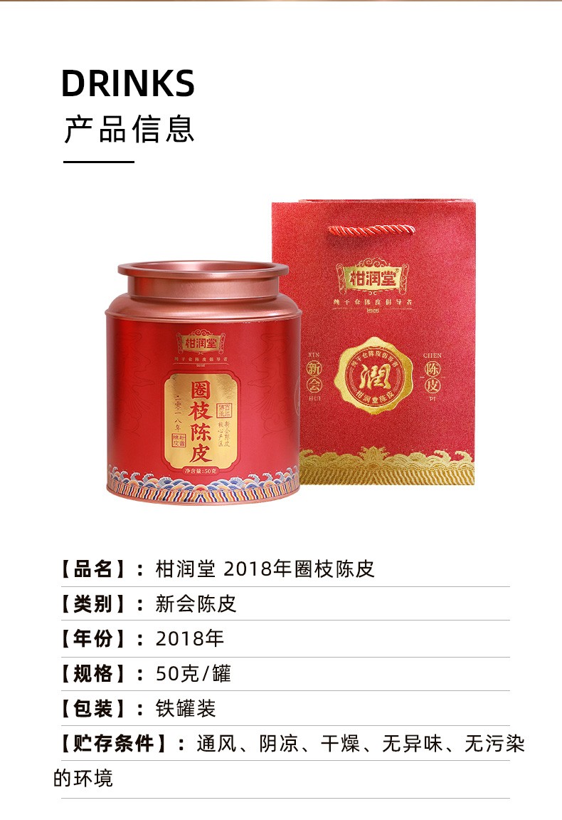 柑润堂 2018年新会圈枝陈皮广东新会特产纯干仓陈皮罐装 简介