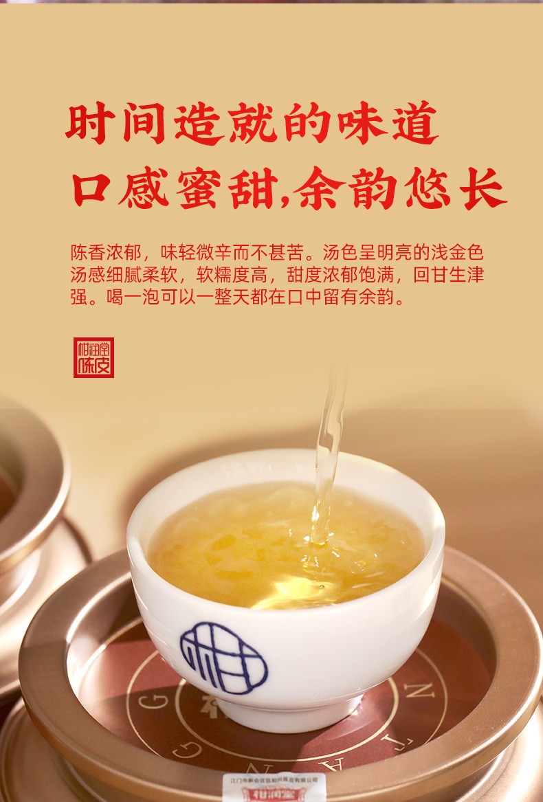 柑润堂茶业有限公司,定位于精品级别的柑普茶专业品牌,专注于健康产业市场,在新会拥有三家食品级工厂、签约超20家柑园、参股种植1120亩梅江庄园,具有柑茶产业链上游资源的完整战略布局,是一家工艺精湛、设备先进、管理科学,并坚持走品质化和品牌化发展路线的现代化生产企业。