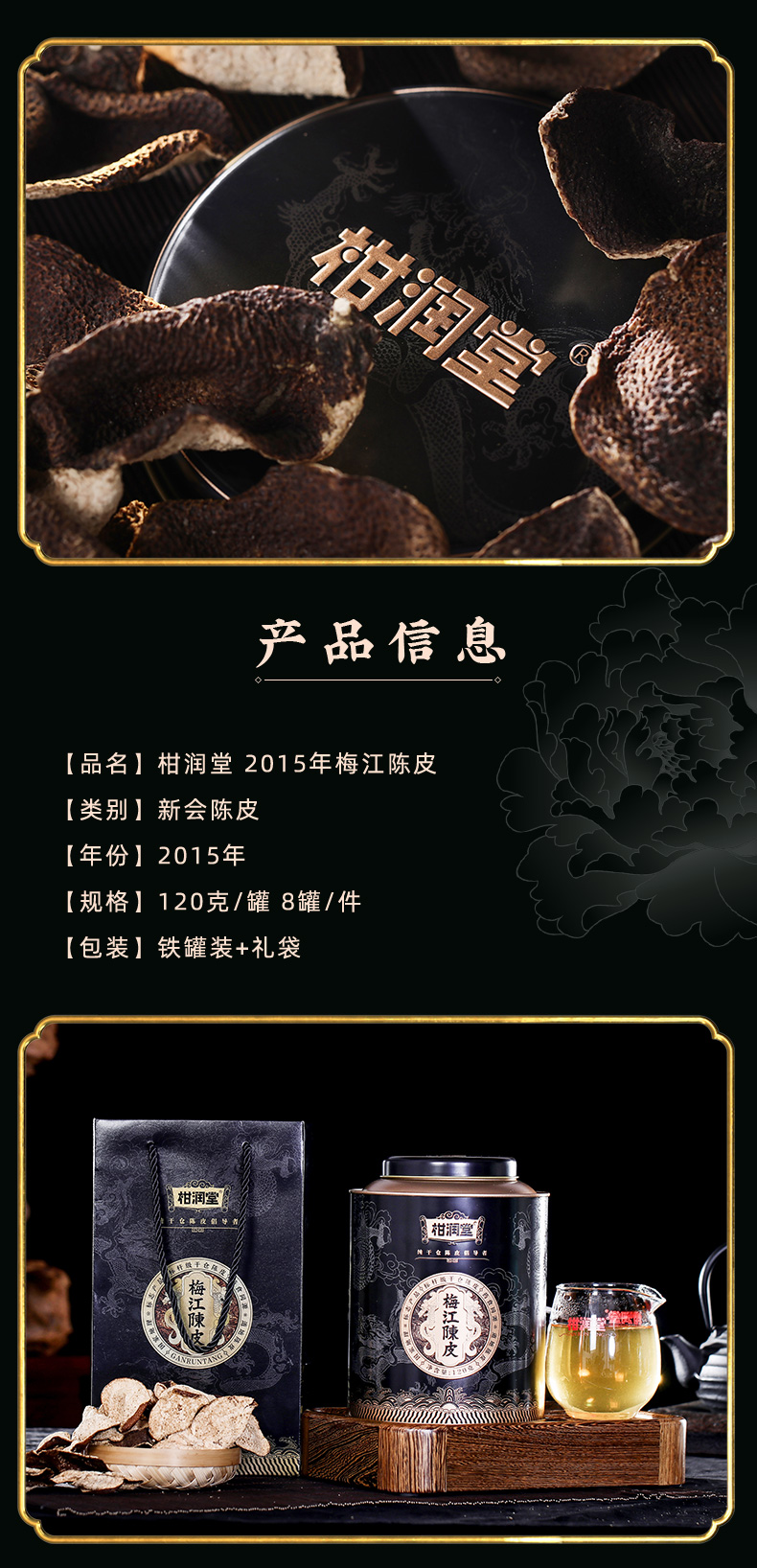 柑润堂2015年梅江陈皮新会纯干仓陈皮送礼广东特产铁罐礼袋装120g 简介