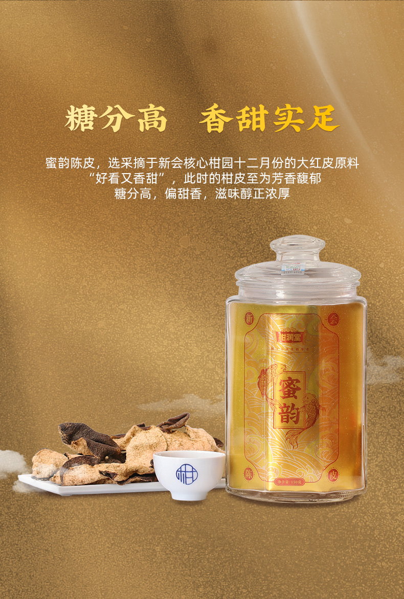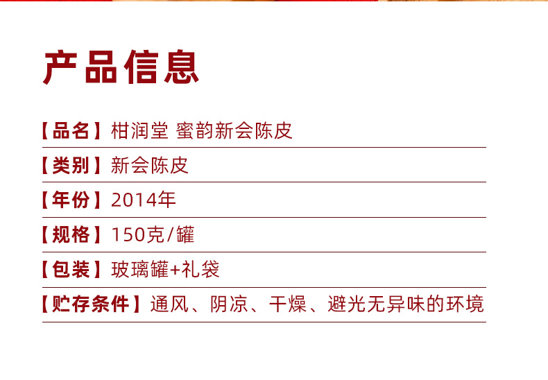 柑润堂2014年正宗新会陈皮蜜韵陈皮新会纯干仓老陈皮玻璃罐送礼礼品广东新会特产陈皮150克罐装 简介