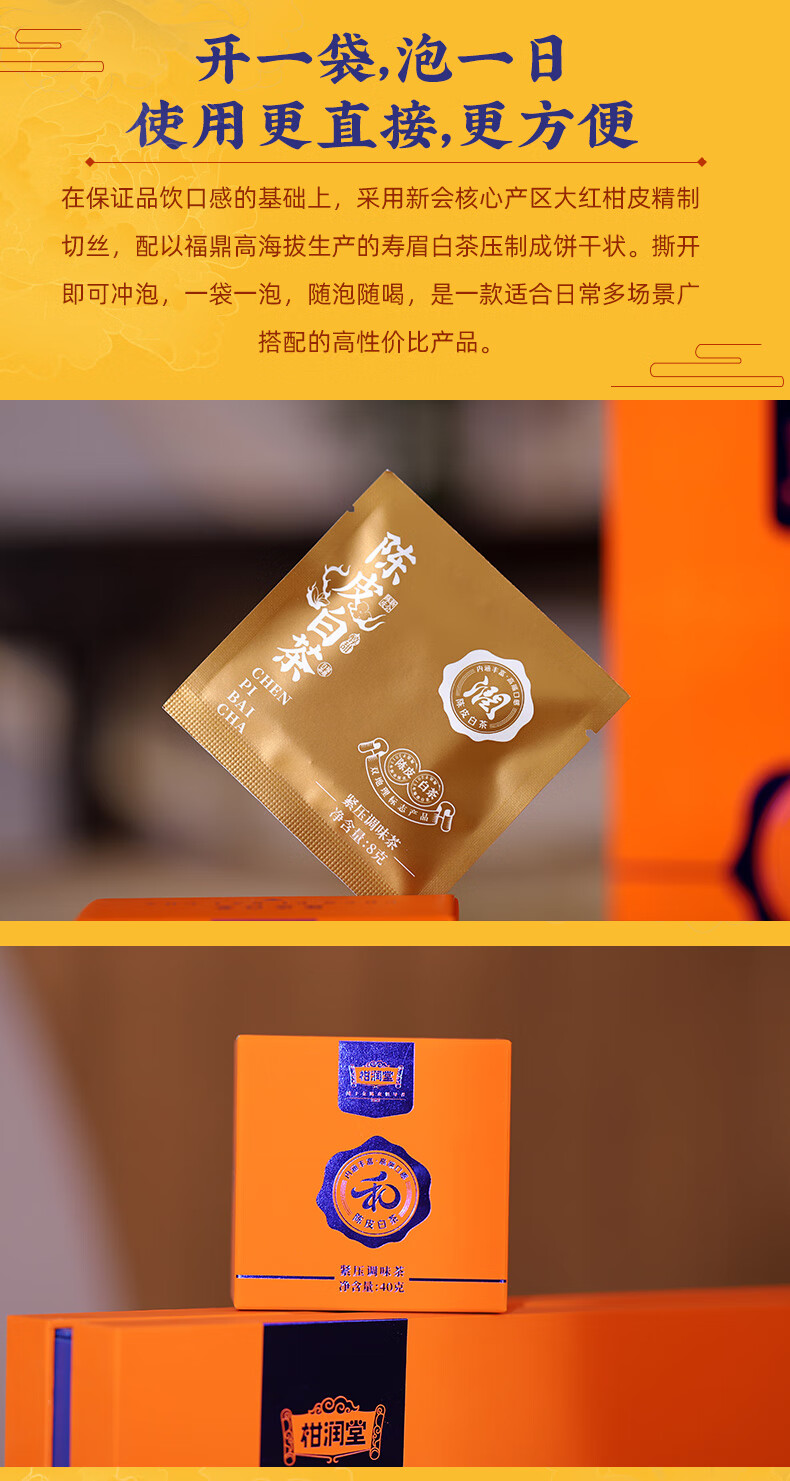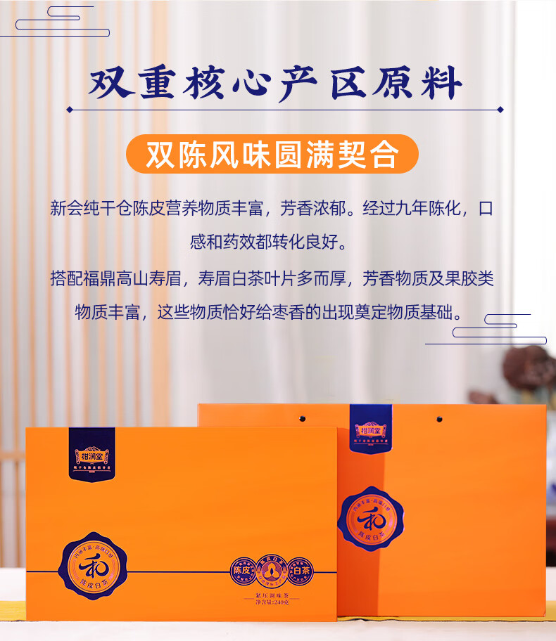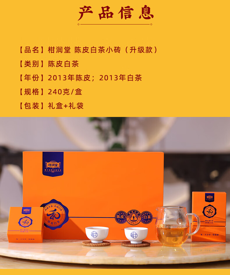 柑润堂 陈皮白茶小砖升级款2013年新会纯干仓陈皮搭配福鼎高海拔寿眉礼盒装240克 简介