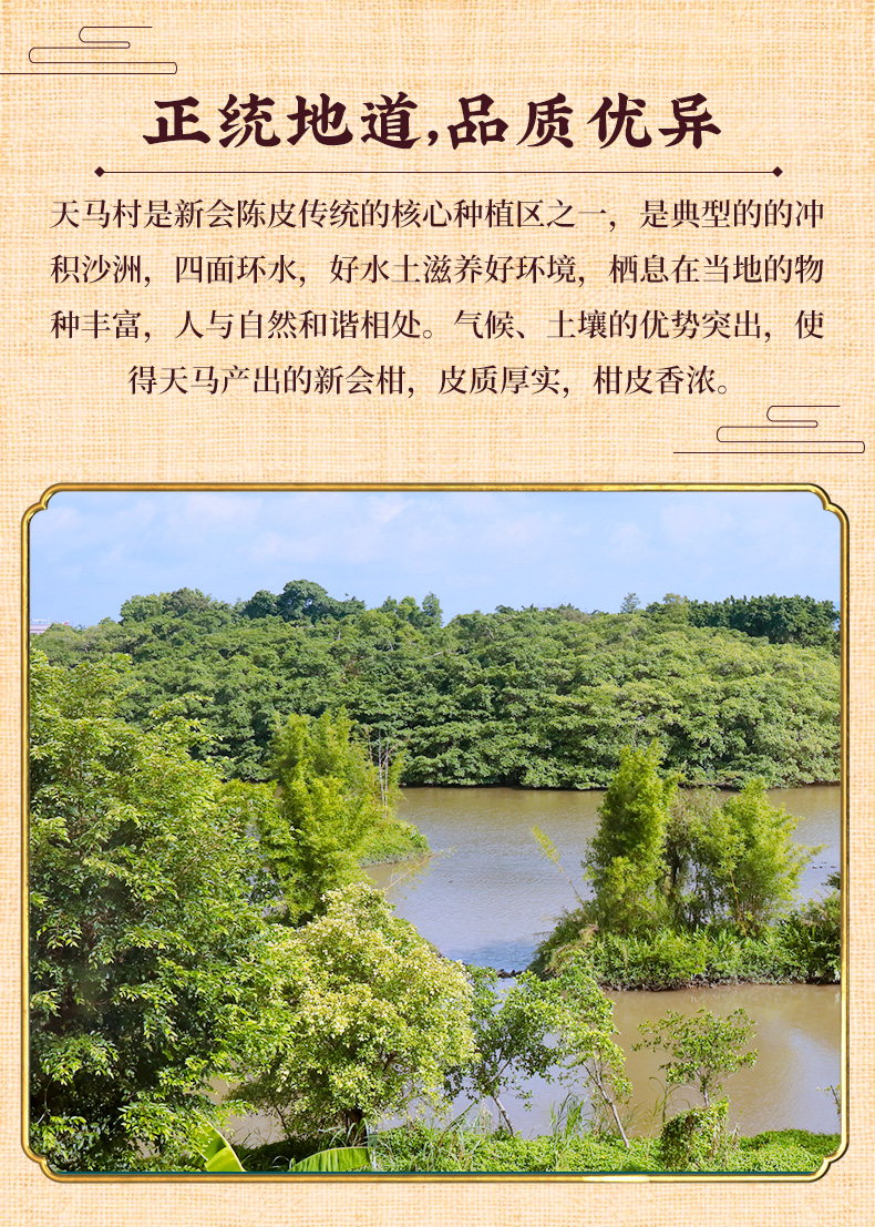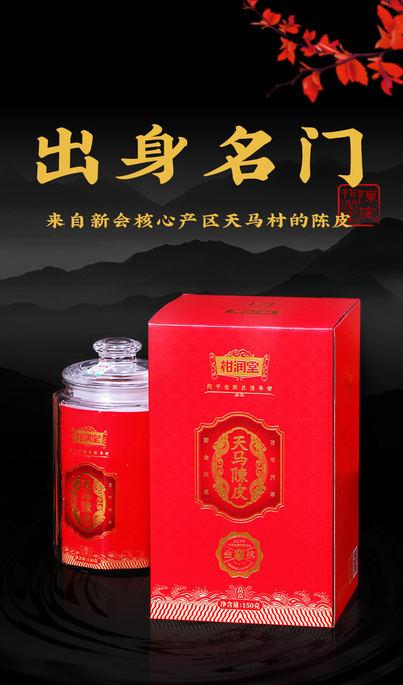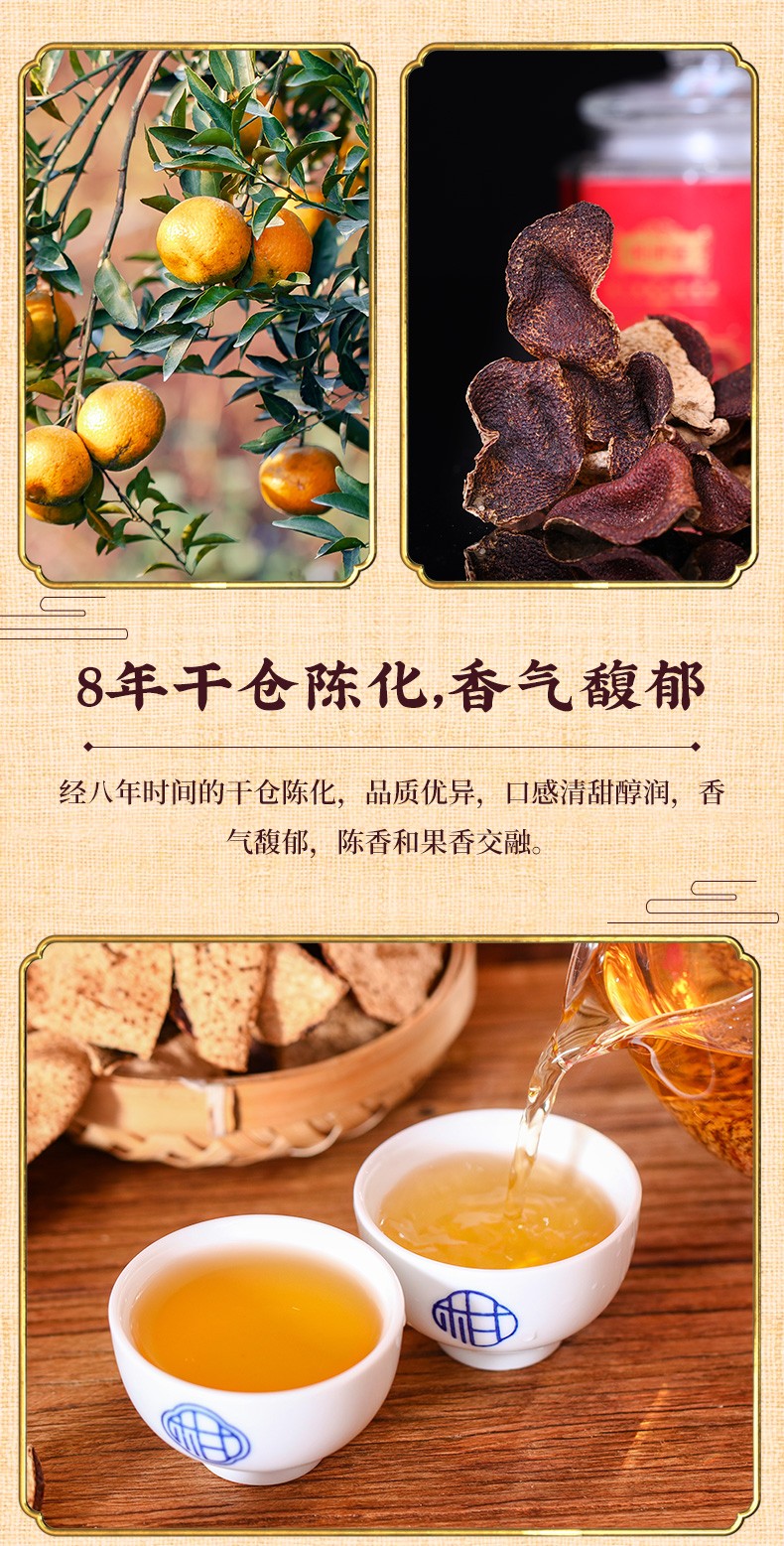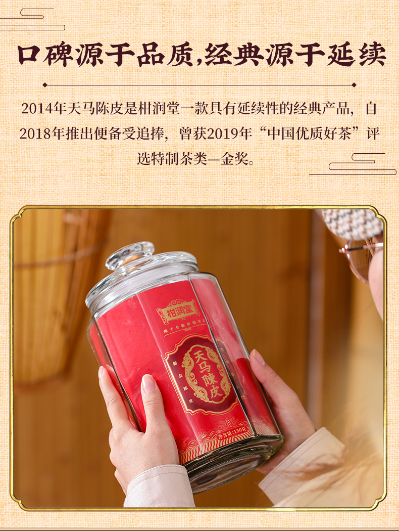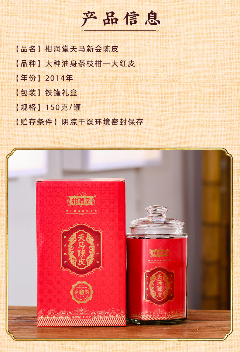 柑润堂2014年天马陈皮正宗8年纯干仓老陈皮玻璃罐装广东新会150克罐装 简介