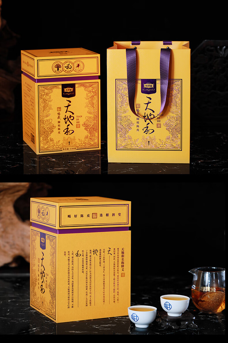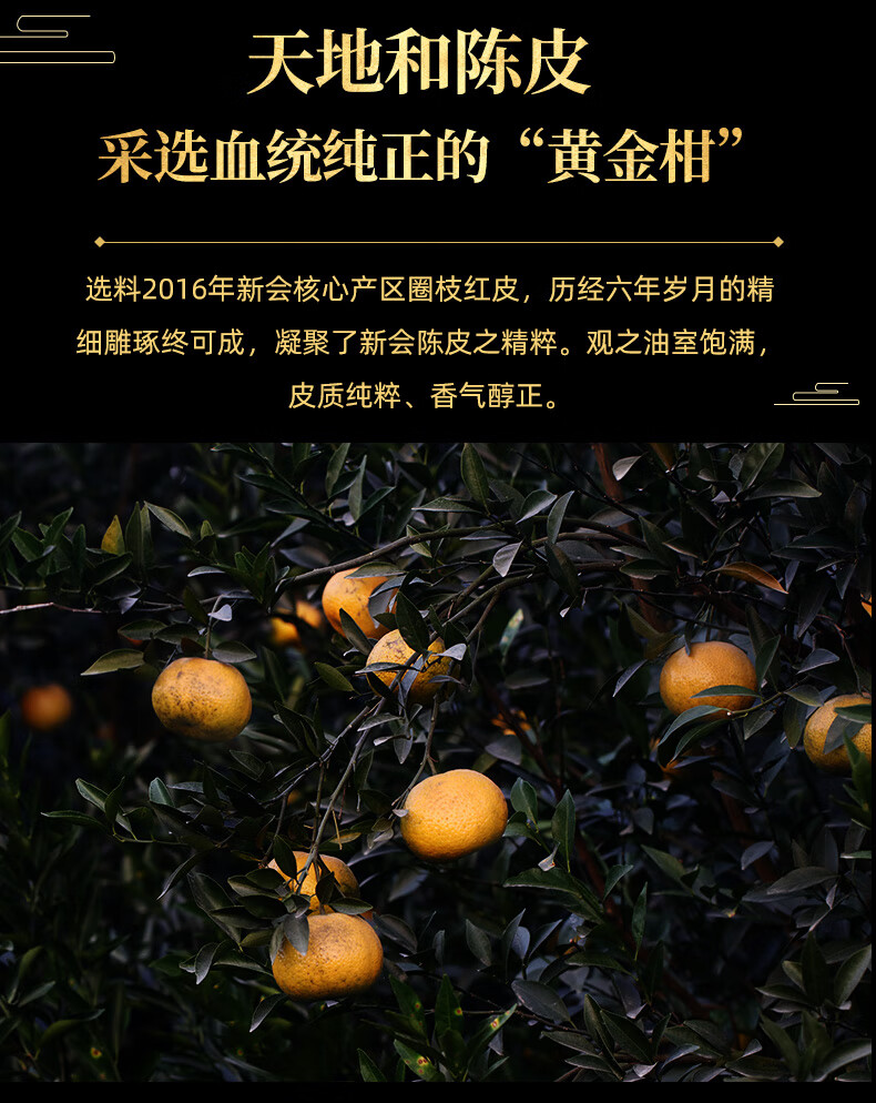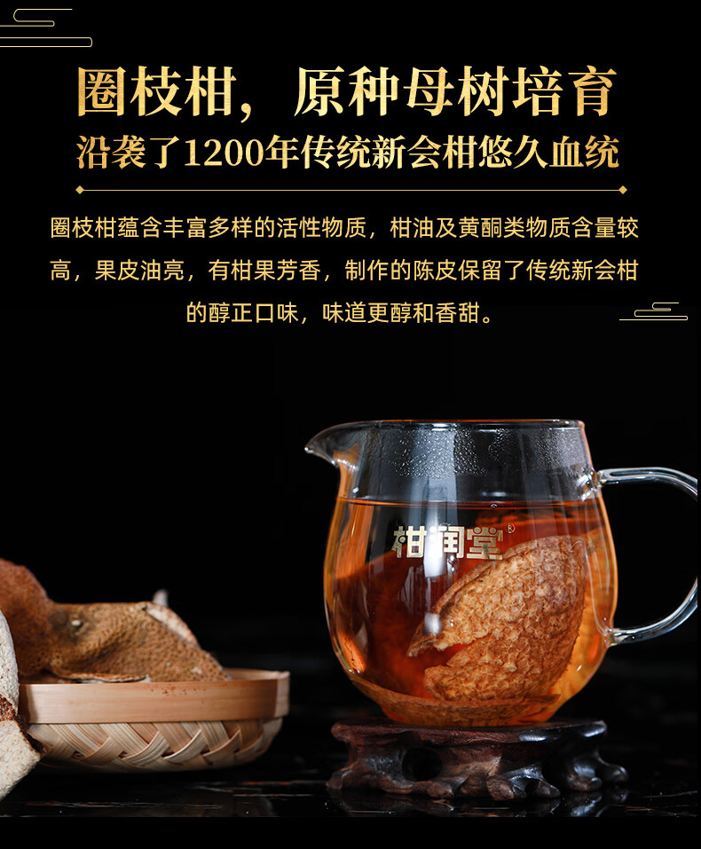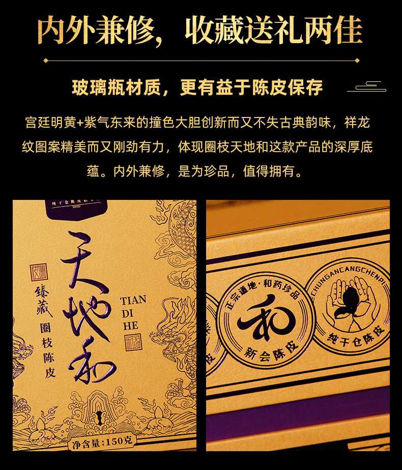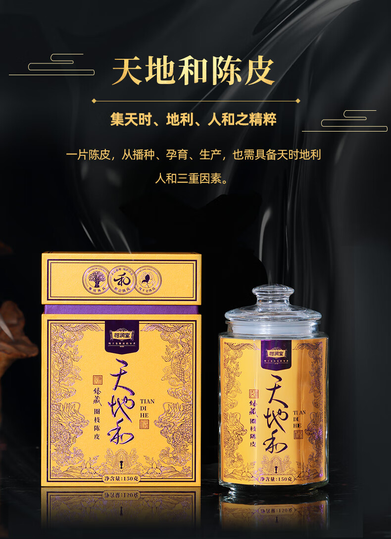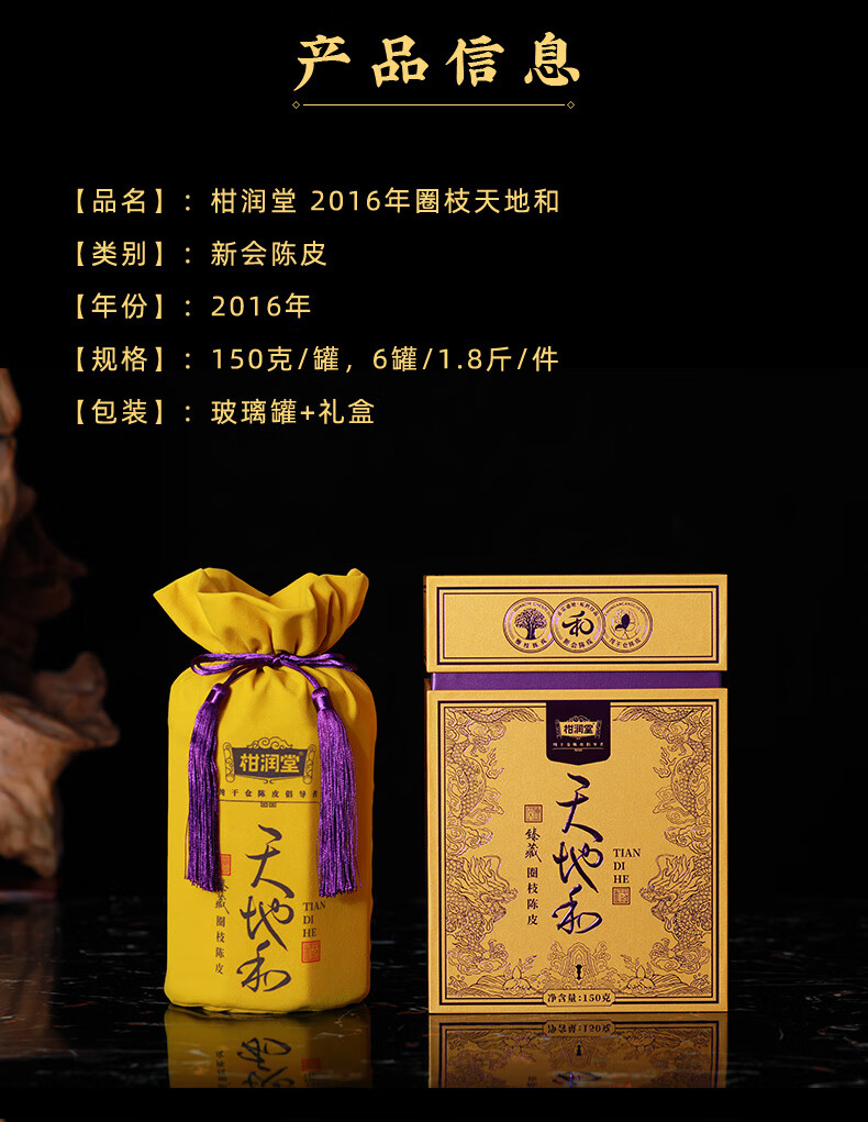 柑润堂天地和2016年新会圈枝陈皮纯干仓陈皮广东新会玻璃罐礼盒装150克 简介