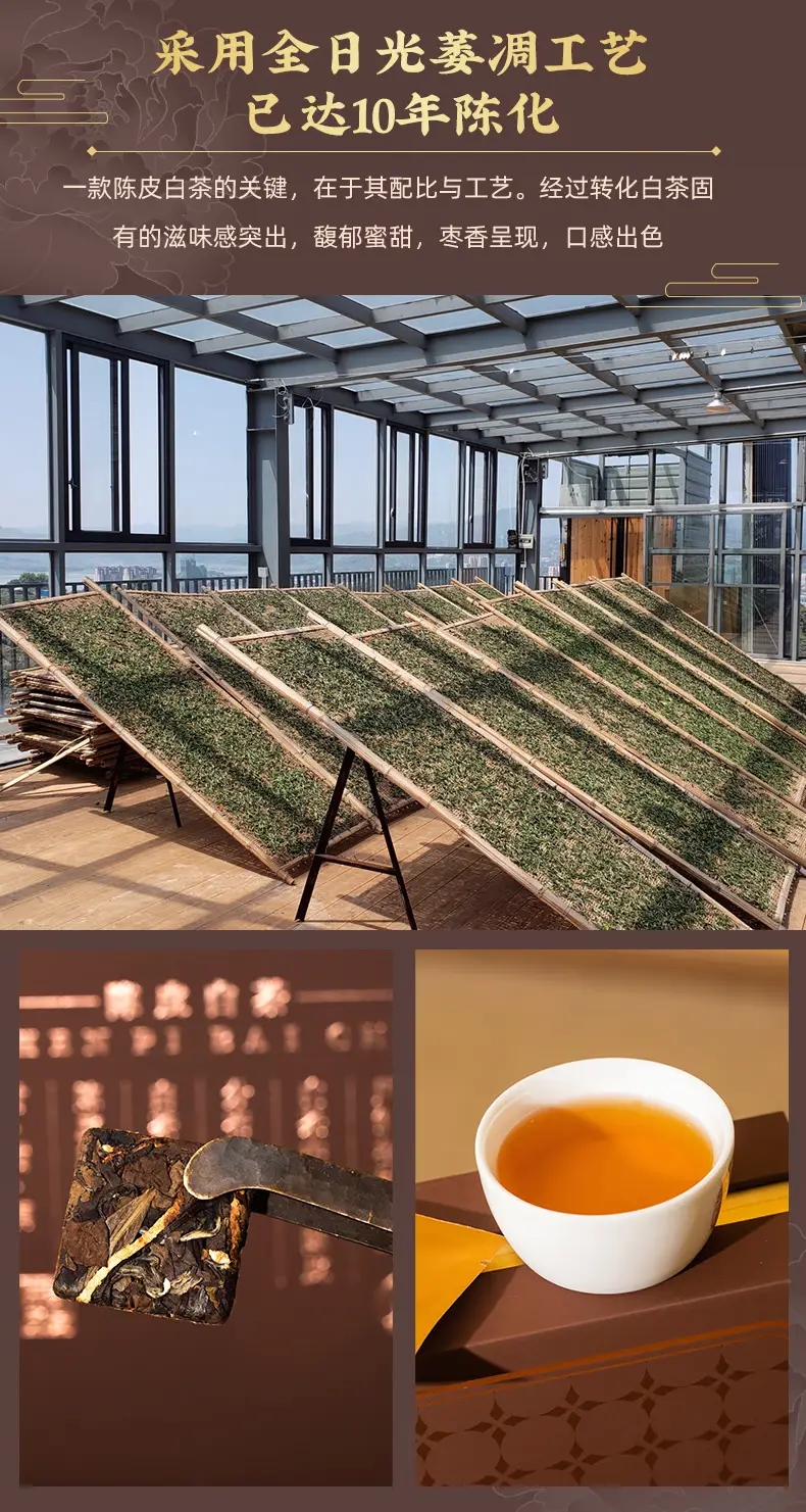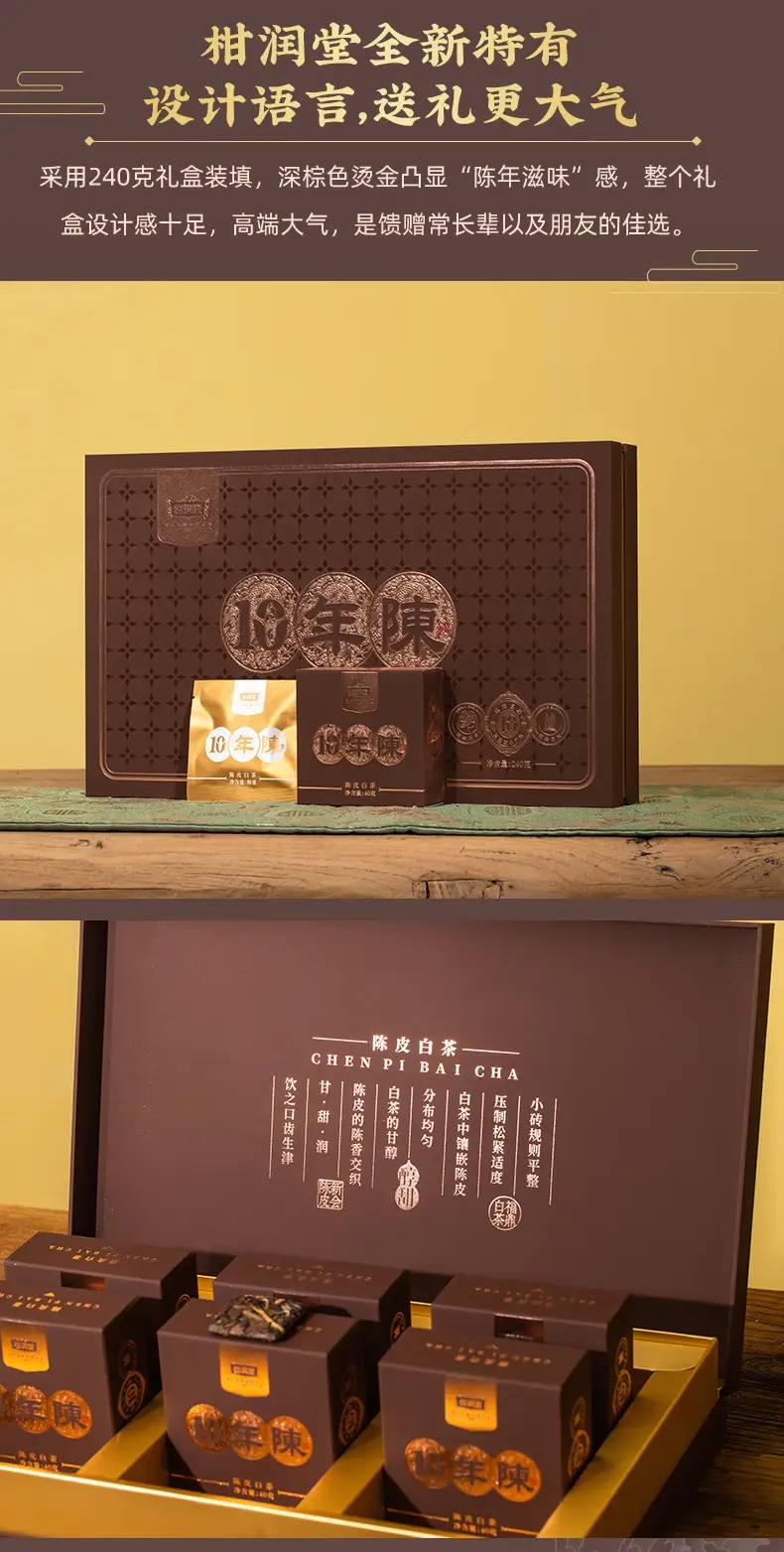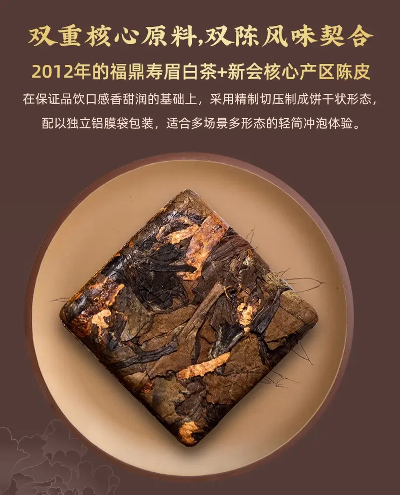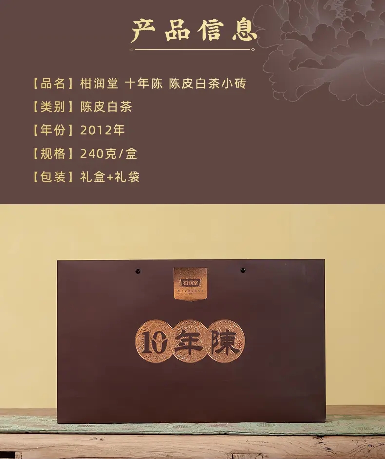柑润堂 十年陈皮白茶小砖2012年新会纯干仓陈皮搭福鼎寿眉老白茶盒装240g 简介