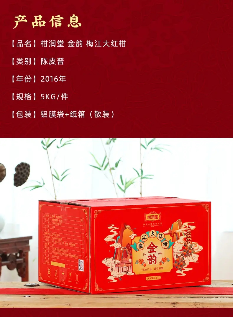柑润堂金韵梅江大红柑云南普洱熟茶搭配梅江大红柑普茶整件量贩装5kg 简介