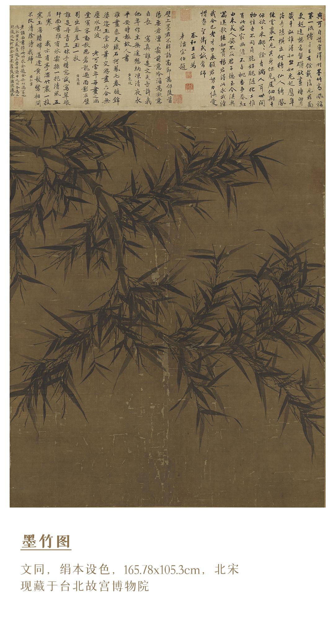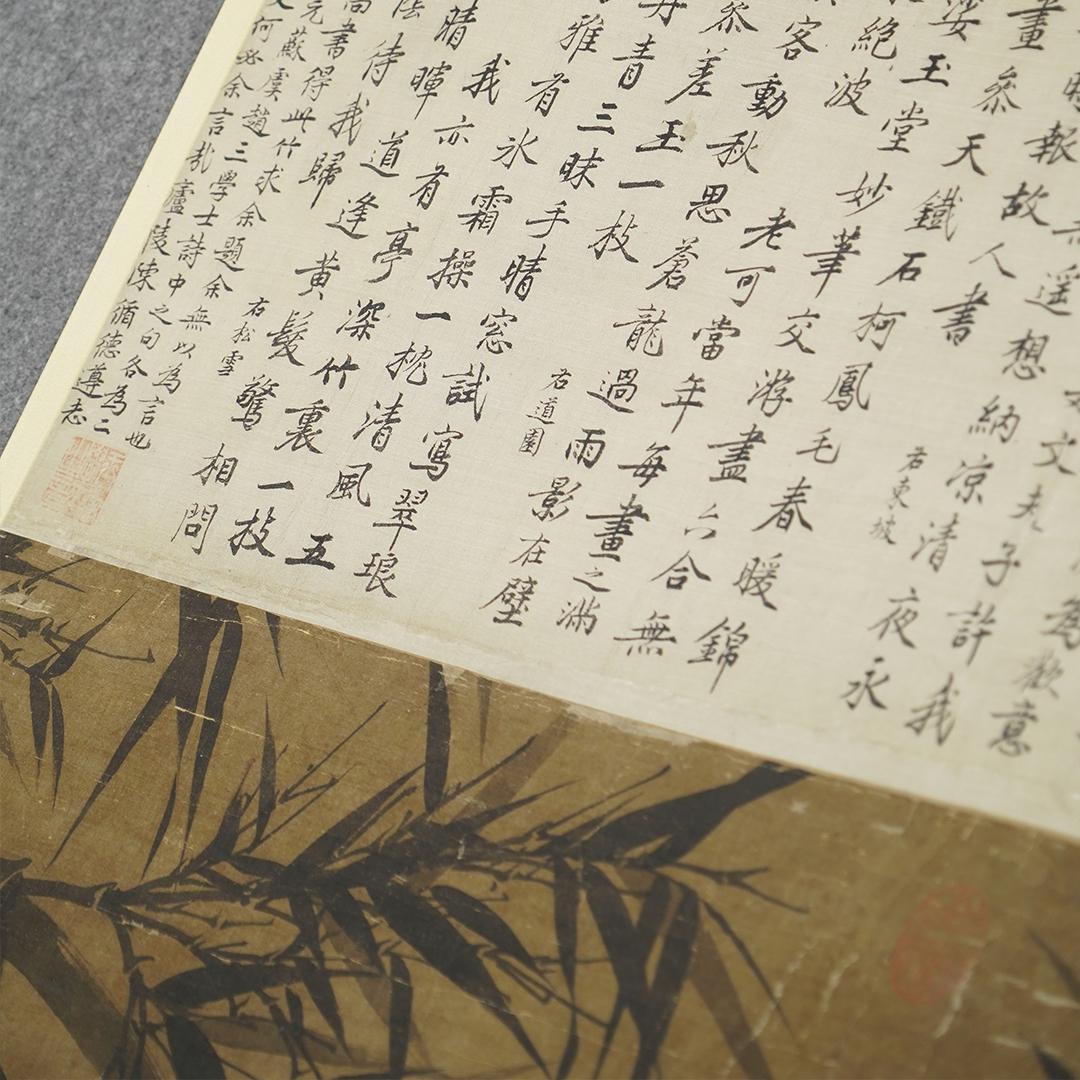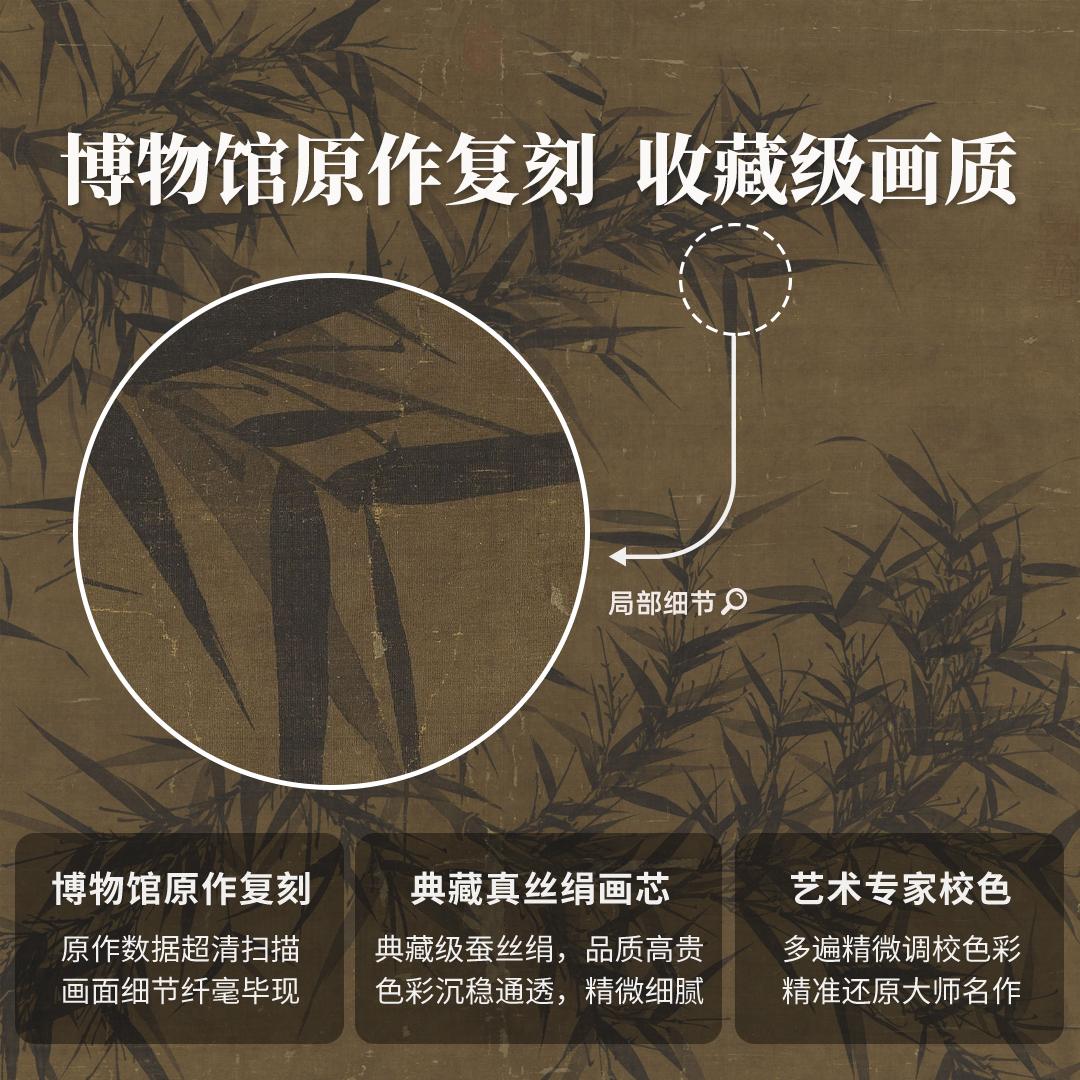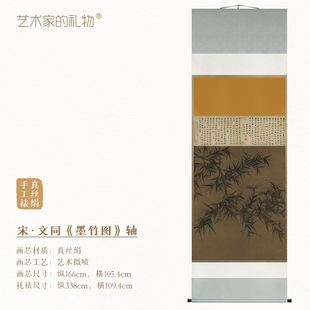 北宋文同《墨竹图》挂轴真丝绢画芯原大复刻手工精裱 简介