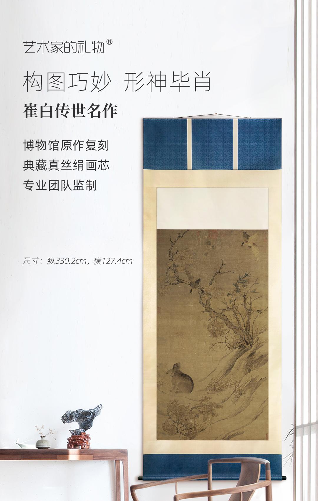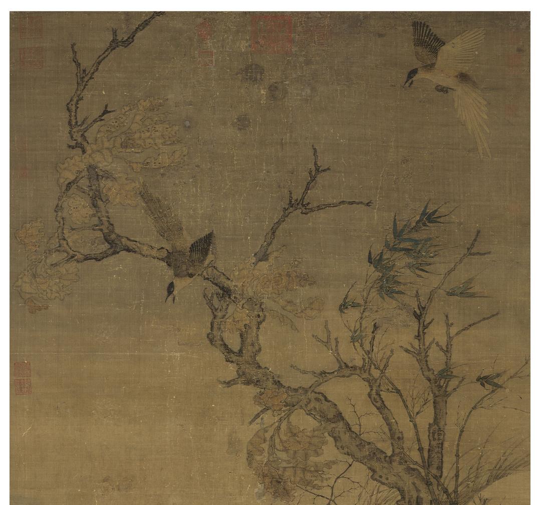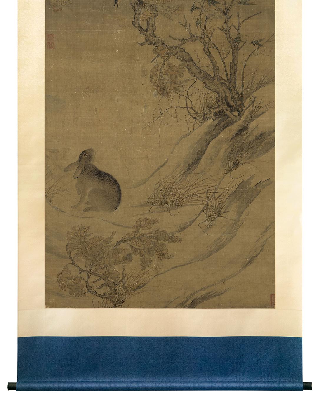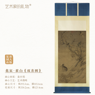 北宋.崔白《双喜图》挂轴真丝绢画芯古法手工精裱 简介
