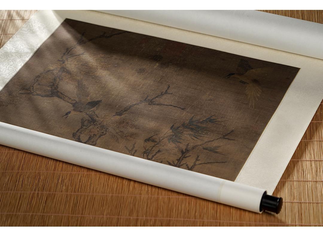 北宋.崔白《双喜图》挂轴真丝绢画芯古法手工精裱