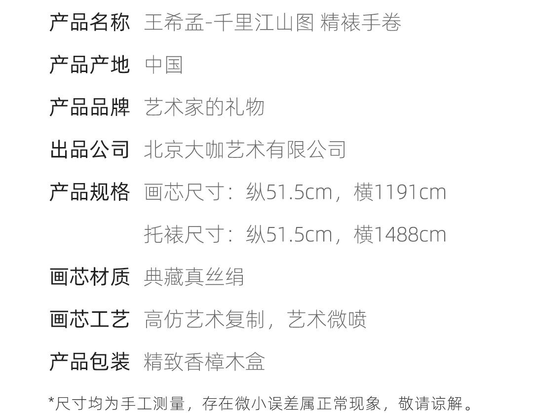 王希孟《千里江山图》高定版手卷真丝绢画芯古法手工精裱 简介